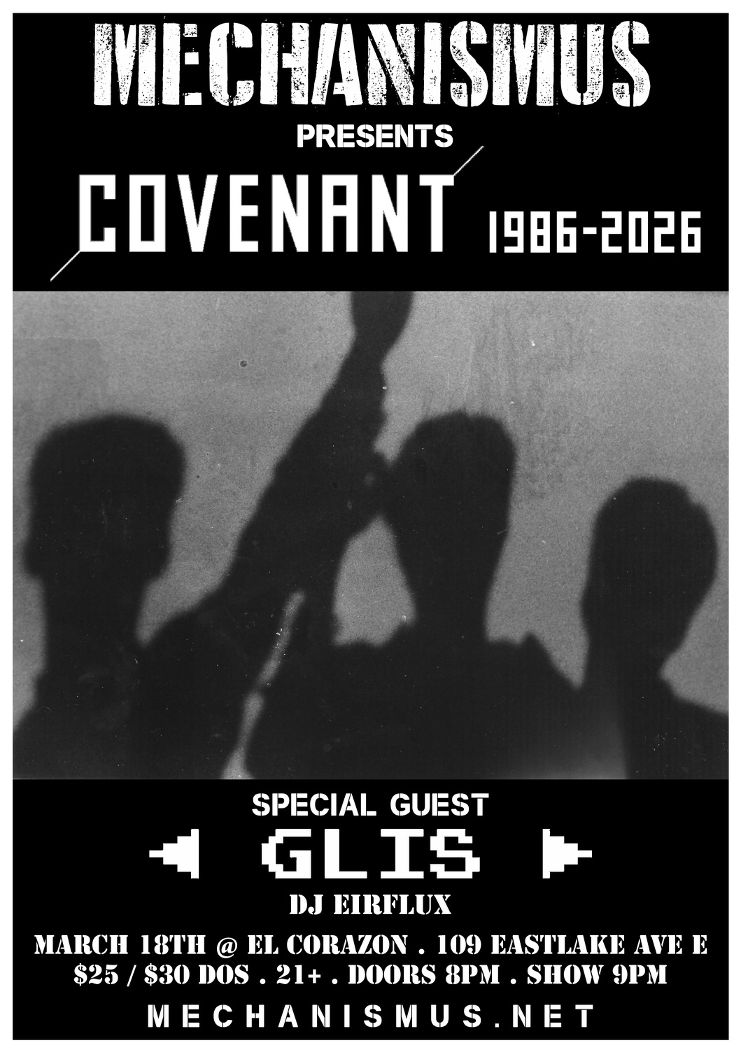 Covenant is a critically acclaimed Swedish electronic band formed in 1986 in Helsingborg, known for their blend of EBM, synthpop, and futurepop. Founded by Eskil Simonsson, Joakim Montelius, and Clas Nachmanson, the group is recognized for their atmospheric, dance-oriented sound influenced by Kraftwerk and Front 242.