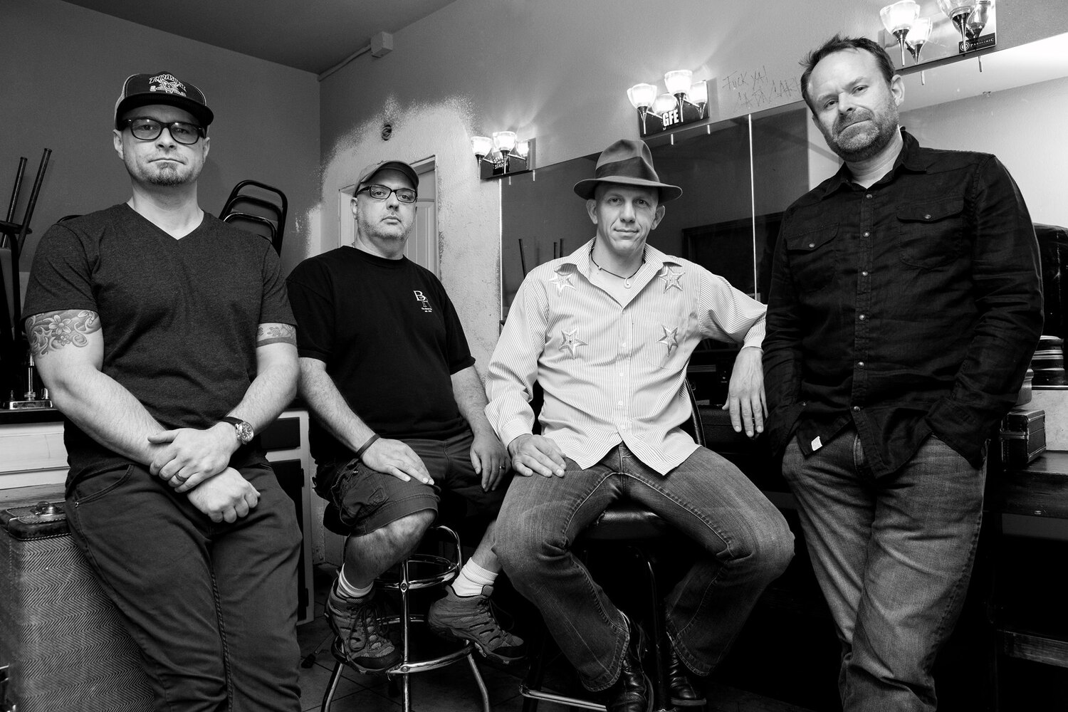 Dave Farrell (guitar) and Eve Clarke (lead vocals/guitar) started writing music via email during the pandemic in June of 2020. They recruited Johnny Massey (bass) and former drummer Eddy Rhoads and started jamming in person in October of 2020. Rico Ybarra replaced Eddy in September of 2021 as a "fill-in" that wound up fitting in so well that he stayed for three years and joined them in recording the debut album. After recording five songs for the second album, due to time constraints and different goals, Rico decided to depart. In October of 2024, Doug Peters stepped in on drums. He has recorded the remainder of the second album with the band as a permanent member.