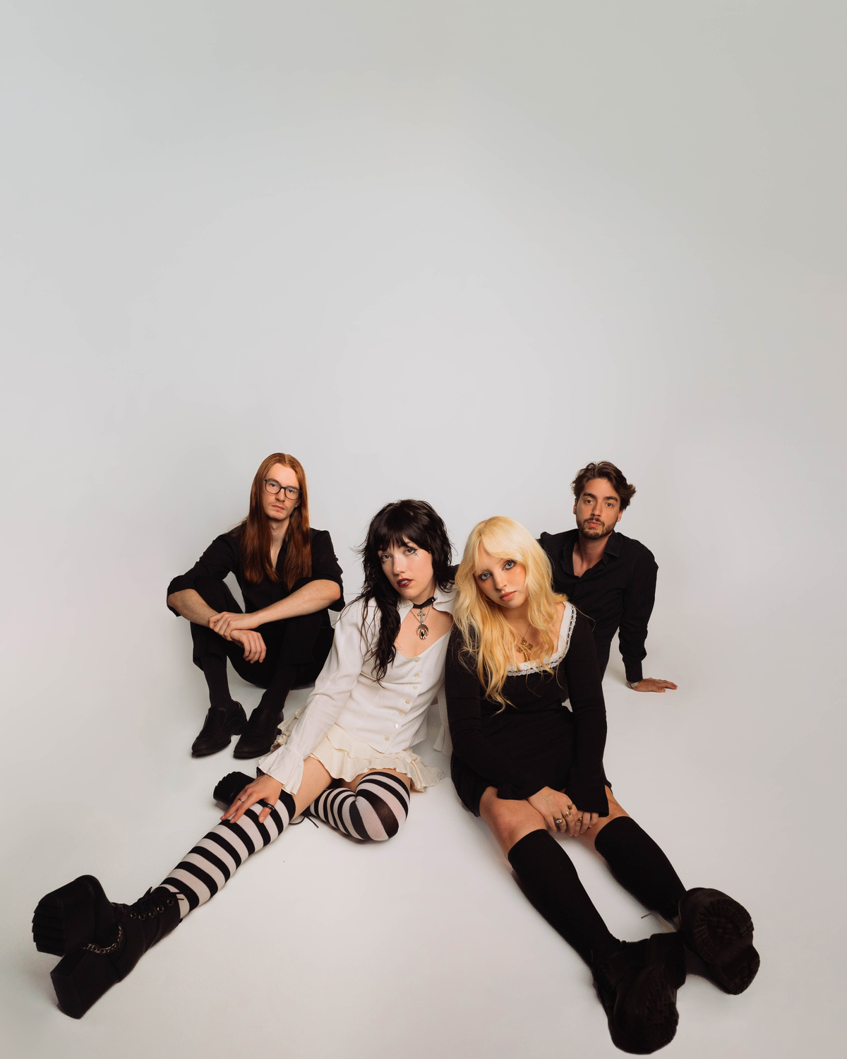 Karma and the Killjoys is Rain Scott-Catoire (piano, vocals, songwriting), Sydni Myers (vocals, songwriting), Thomas Vercher (drums), and Tim Marchand (guitar).