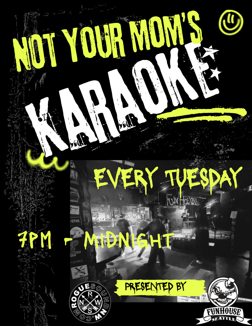 Not Your Mom’s Karaoke is where the lights are low, the vibes are high, and the PA is absolutely booming. With kickass sound that hits hard and crystal-clear mics that let you scream along like a rock legend, this isn’t background-music karaoke — it’s center-stage, hair-flipping, power-note-belting glory. Whether you’re channeling your inner diva or fronting an air-guitar anthem, every song feels like a sold-out arena show.