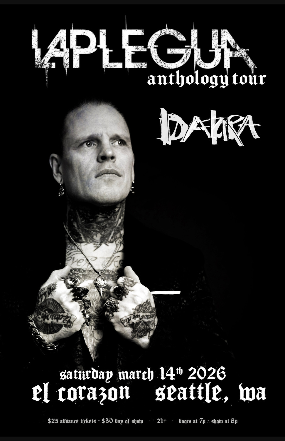 New industrial supergroup "LaPlegua" features Andy LaPlegua plus bandmates, playing his favorite songs from his career including: Icon of Coil, Combichrist, Panzer AG, Scandy, plus original material. This unique anthology show is not to be missed and a rare chance to hear your favorite Icon of Coil and Panzer AG tracks performed by the original singer!