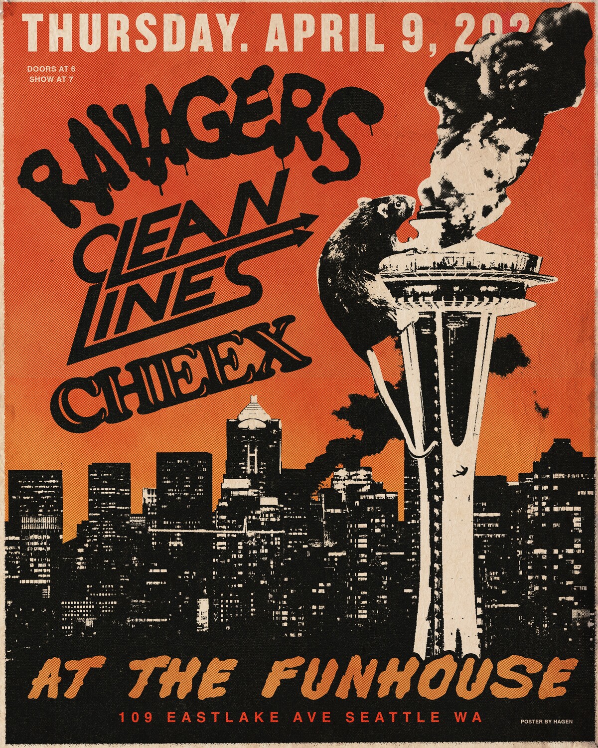 For over a decade, guitarist and vocalist Alex Hagen has been penning the sort of nightmarish yet anthemic punk rock that captivates the youth as well as yesterday’s heroes. Blending hard rock, ‘77 punk and arena guitar hooks - courtesy of lead guitarist Matt Gabs (formerly of Fishnet Stalkers/BITERS) - the group vows to exterminate any poser vermin that stand in their way. Clawing their way across countless U.S. and European runs, Ravagers have shared stages and tours with the likes of legends such as The Damned, Michael Monroe, The Adicts, Fear, and Supersuckers just to name a few.